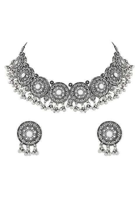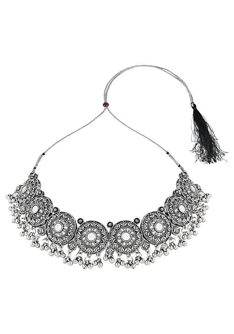 Navratri Ethnic Silver Oxidized Traditional Afghani Choker Necklace Jewellery Set