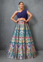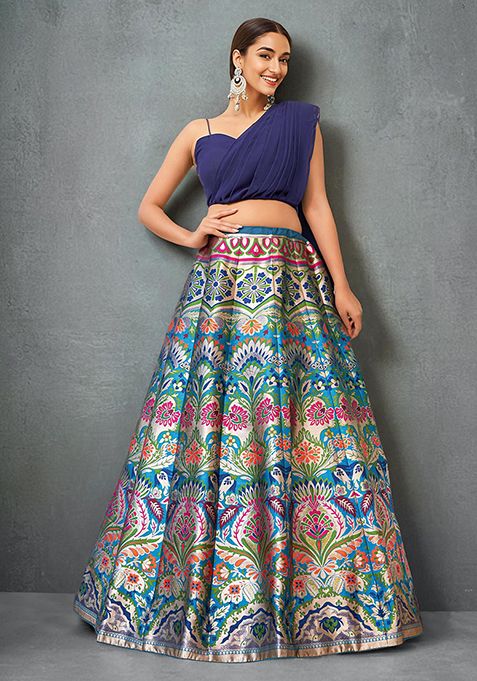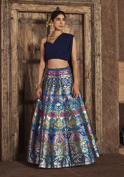 Navy Blue Banarasi Silk Zari Work Lehenga Set – XLH01111