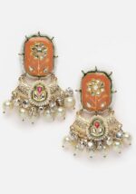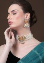 Be the first to review “Orange And Silver Gold Plated Kundan Pearl Choker Necklace With Earrings Set” Cancel reply