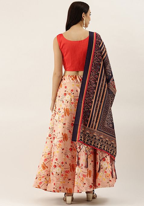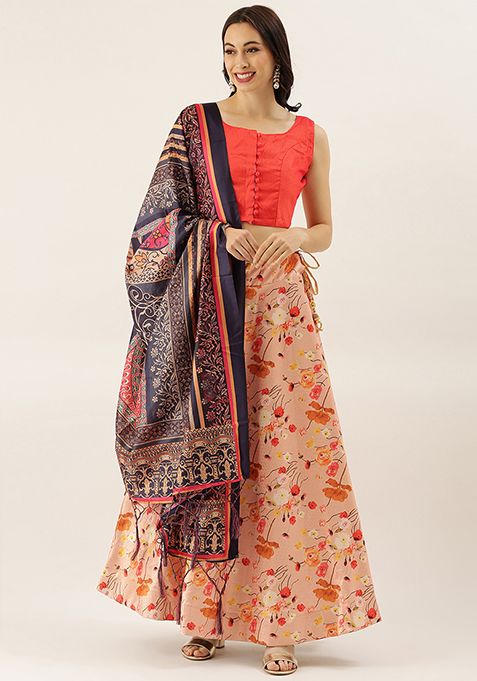 Orange Digital Print Silk Satin Lehenga Set – XLH01896