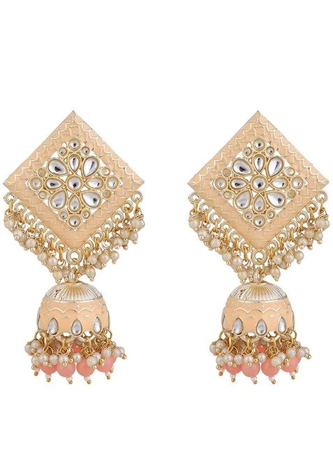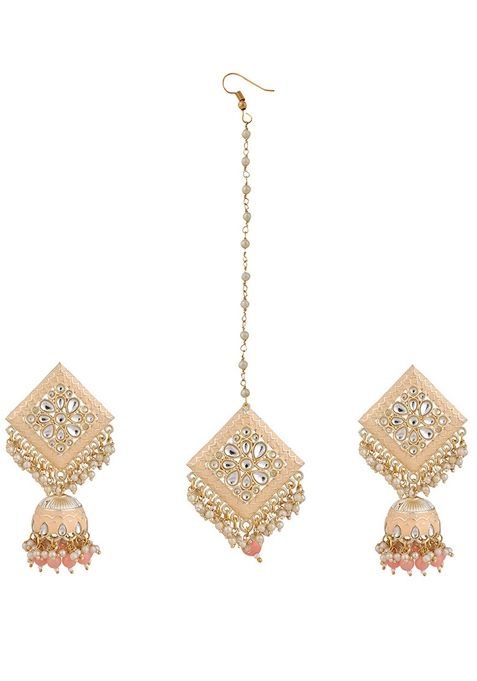 Home Jewellery Peach Cubic Zirconia Maang Tikka With Earrings