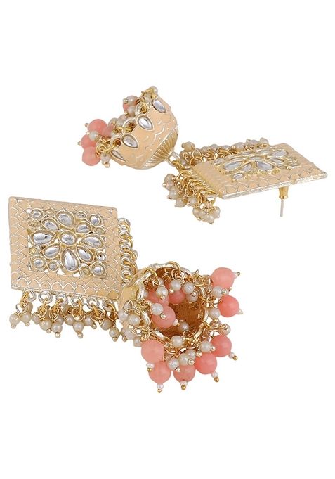 Peach Cubic Zirconia Maang Tikka With Earrings – XJA00527