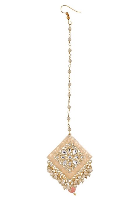 Gold And White Gold Plated Kundan Pearl Mathapatti