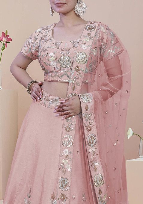 Peach Lehenga Set With Hand Embroidered Blouse And Dupatta – DLS01153