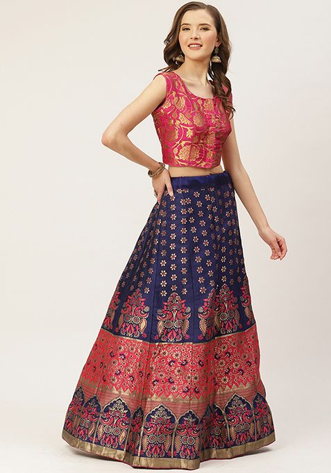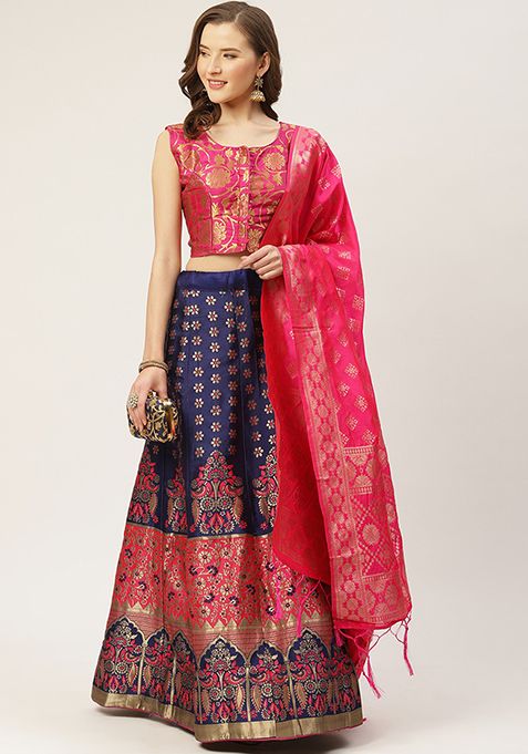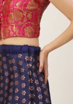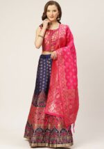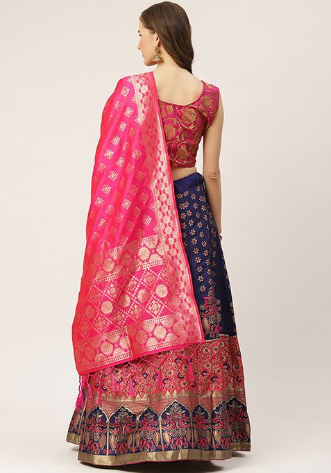 Pink And Navy Blue Woven Zari Silk Lehenga Set – XLH02234