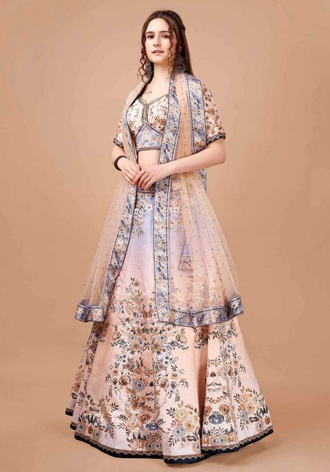 Pink Digital Print Silk Blend Lehenga Set – XLH02851