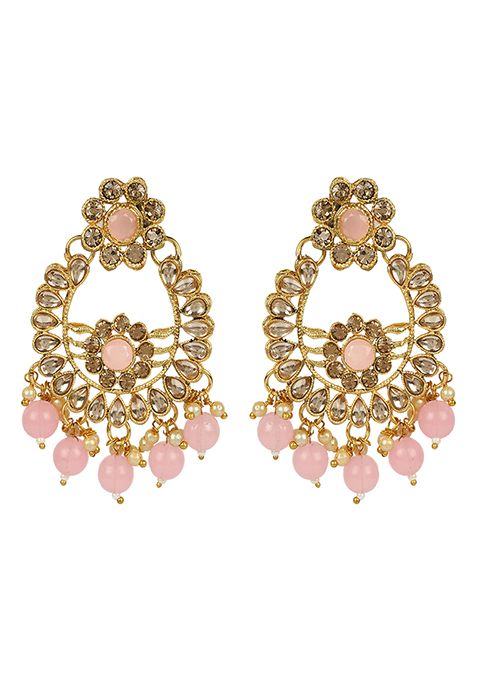 Home Jewellery Pink Gold Plated Kundan Necklace Set With Maang Tikka