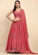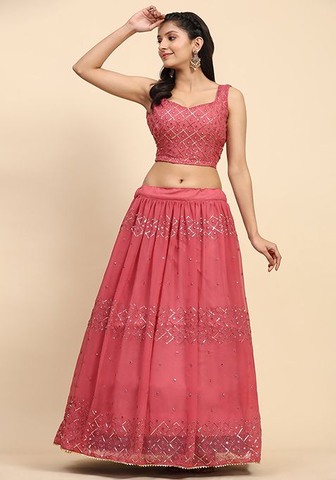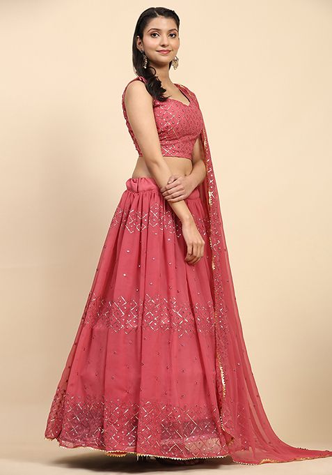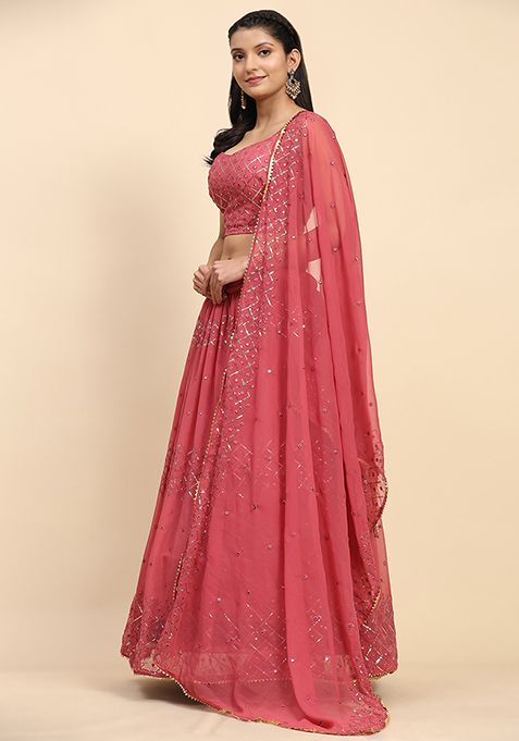 Pink Sequin Embroidered Faux Georgette Lehenga Set – XLH02500