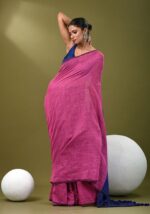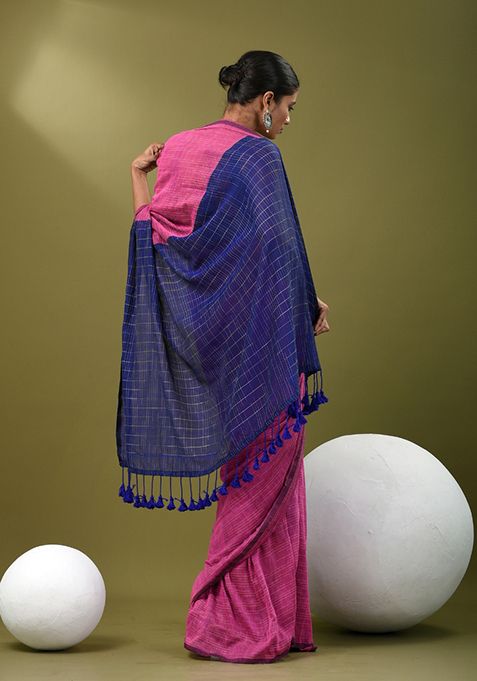 Pink Solid Cotton Saree Set – XSR43950