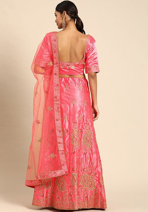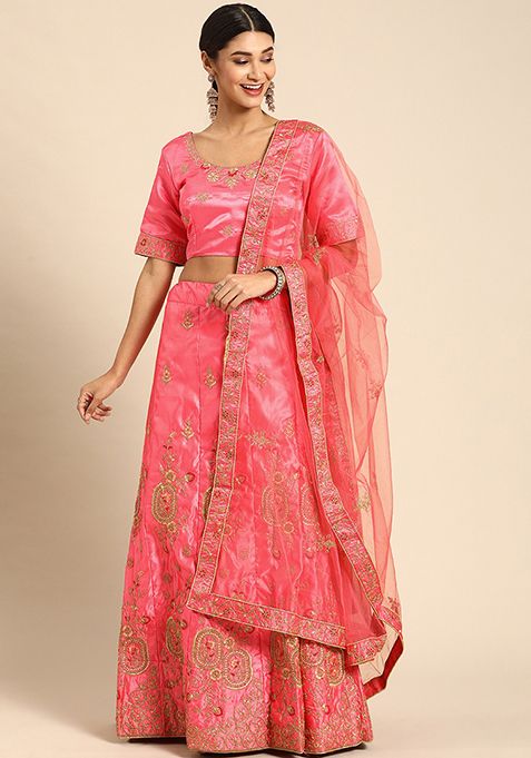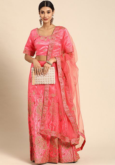 Pink Thread Embroidered Satin Silk Lehenga Set – XLH02235