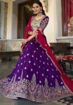 Step into elegance with this stunning Purple Embroidered Vichitra Lehenga Set, designed to turn heads at every celebration. A beautiful blend of tradition and trend, it’s your perfect pick for any grand event.