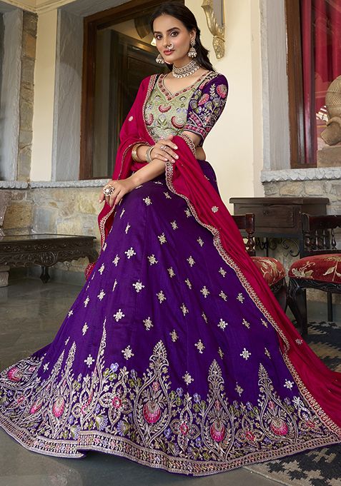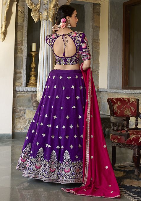 Purple Embroidered Vichitra Lehenga Set – XLH09917