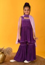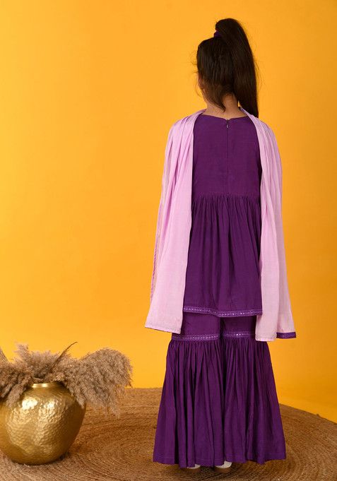Purple Sequin Embroidered Sharara With Kurta And Dupatta (Set of 3) – XGK00026