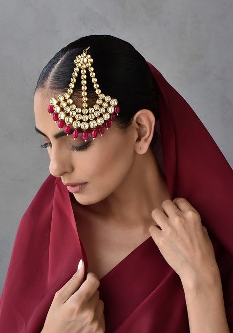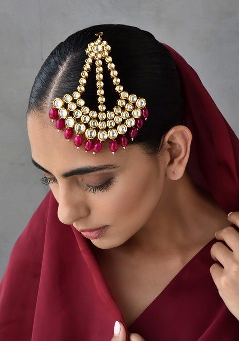 Red Gold Tone Kundan Passa – XJA0110