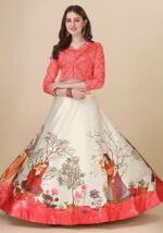 Step into elegance with this stunning Red Printed Satin Silk Lehenga Set, designed to turn heads at every celebration. A beautiful blend of tradition and trend, it’s your perfect pick for any grand event.