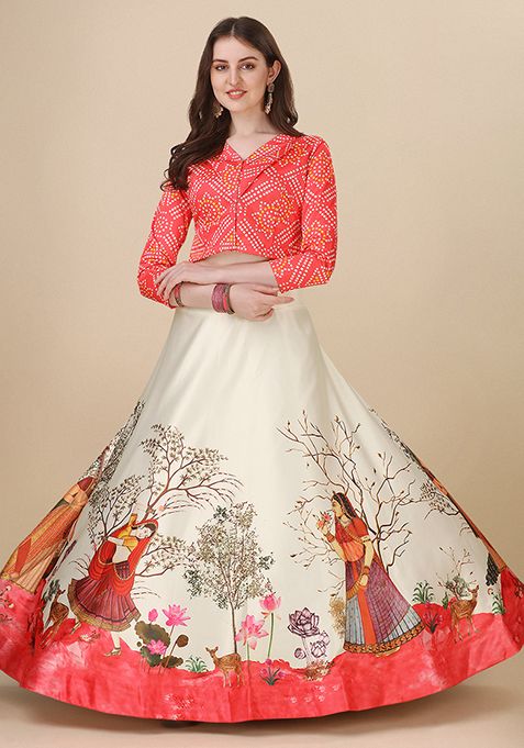 Red Printed Satin Silk Lehenga Set – XLH02014