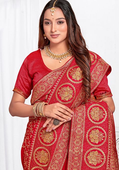 Red Woven Silk Saree Set
