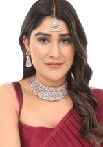 White Gold Plated Artificial Stone And Bead Necklace Set With Maang Tikka