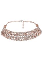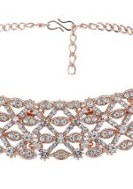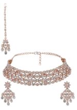 Be the first to review “Rose Gold Rose Gold Plated American Diamond Necklace Set With Maang Tikka” Cancel reply