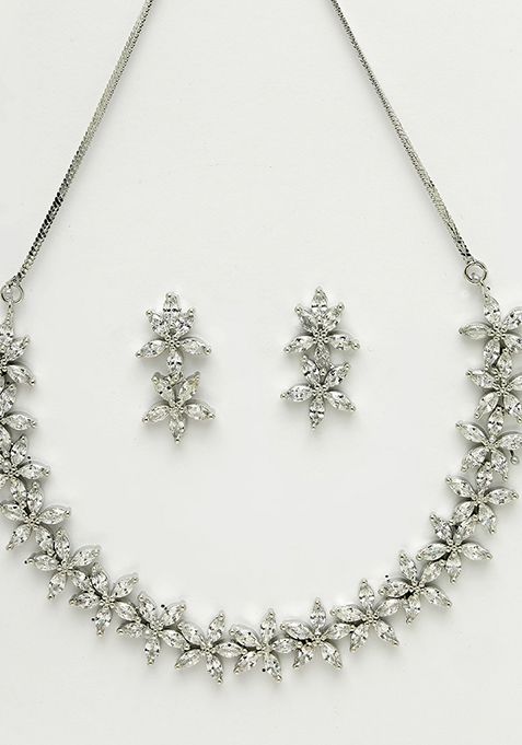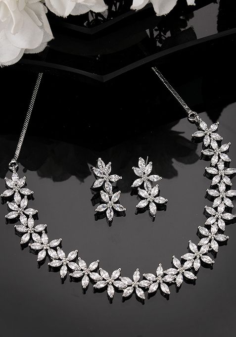 Silver Plated Cz Stone Handcrafted Jewellery Set – XJS02624