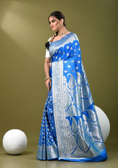 Sky Blue Zari Work Silk Saree Set – XSR43932