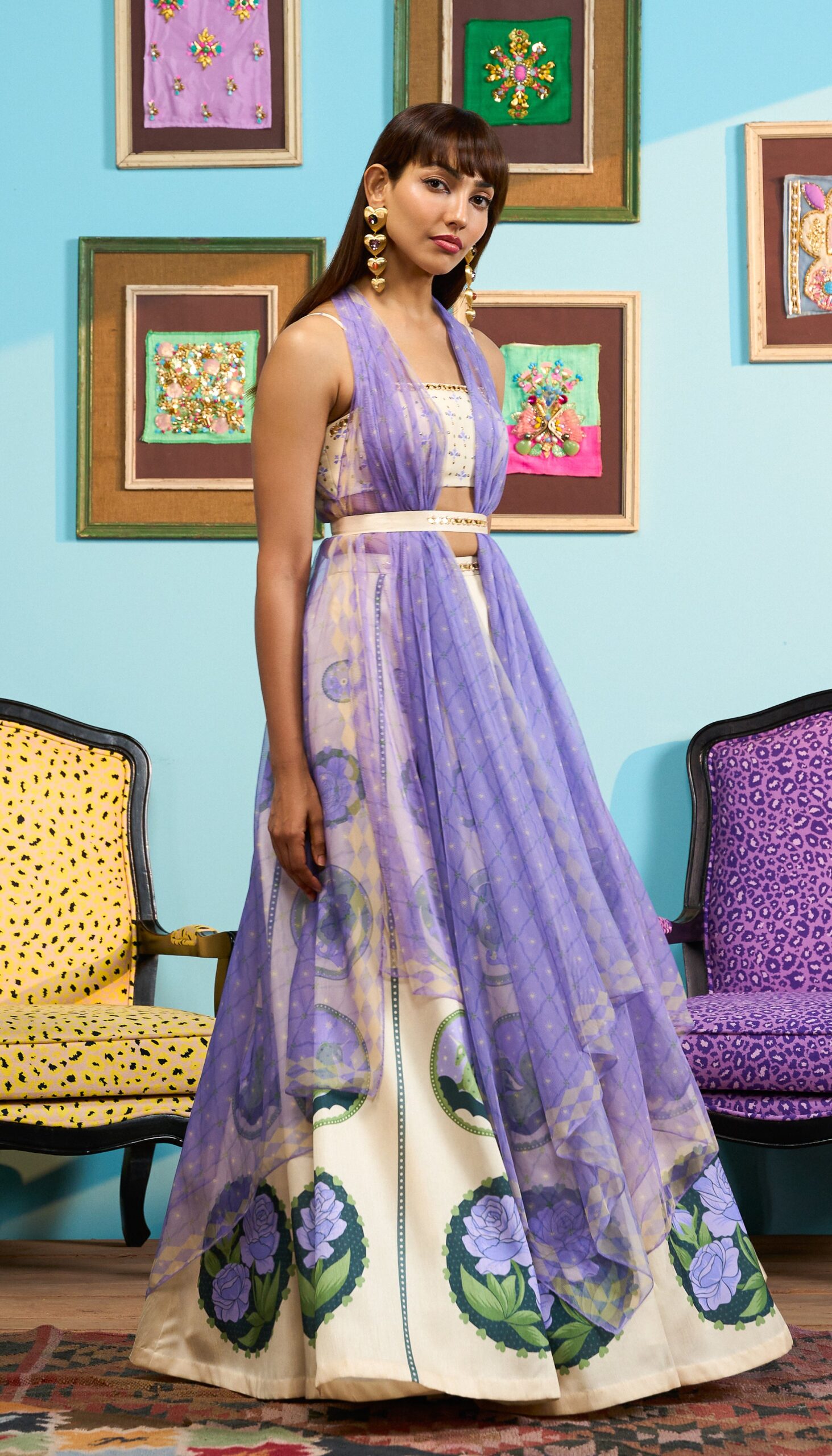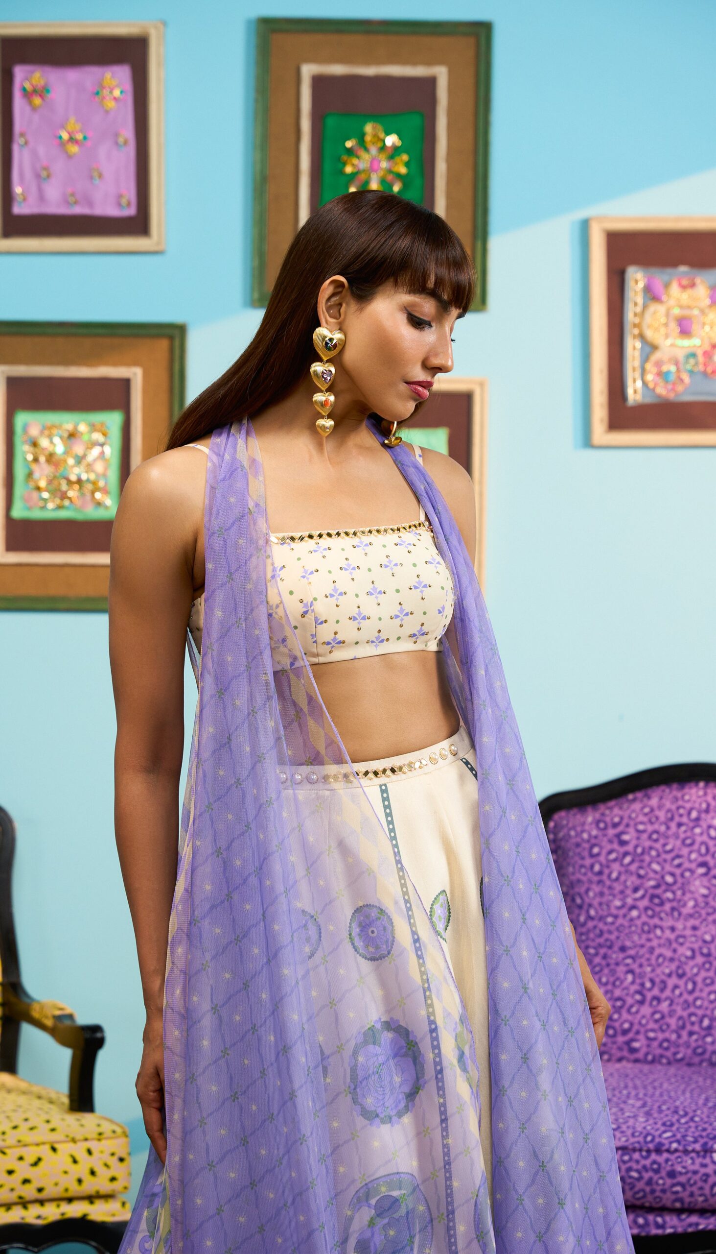 White Lehenga Set With Hand Embroidered Blouse And Dupatta