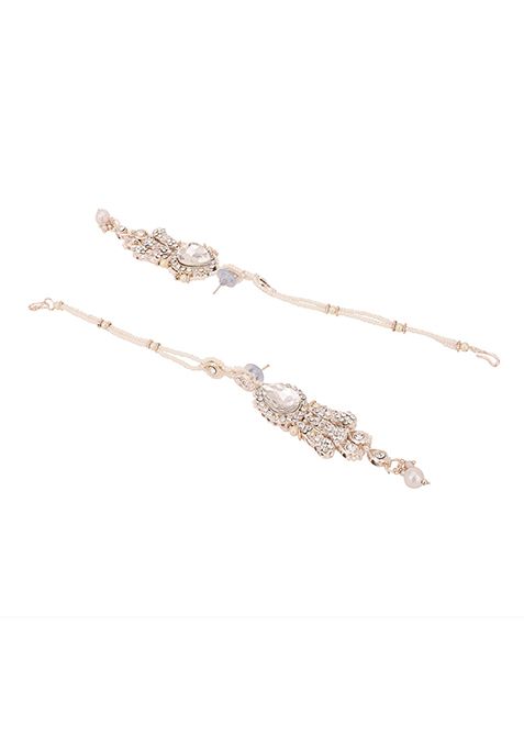 White Gold Plated Artificial Stone And Bead Necklace Set With Maang Tikka