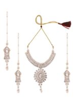 Rose Gold Rose Gold Plated American Diamond Necklace Set With Maang Tikka