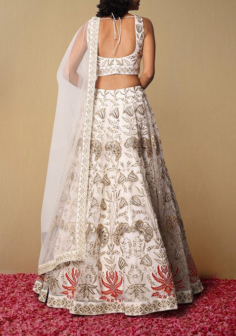 White Lehenga Set With Hand Embroidered Blouse And Dupatta – DLS00223