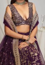 Be the first to review “Wine Zari Sequin Embroidered Georgette Lehenga Set” Cancel reply
