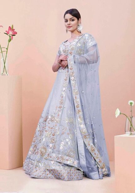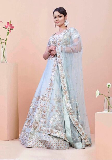 Blue Lehenga Set With Hand Embroidered Blouse And Dupatta