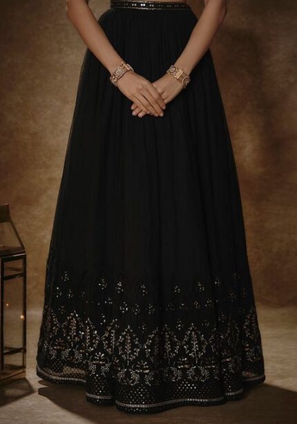 Black Sequin Embroidered Georgette Lehenga Set